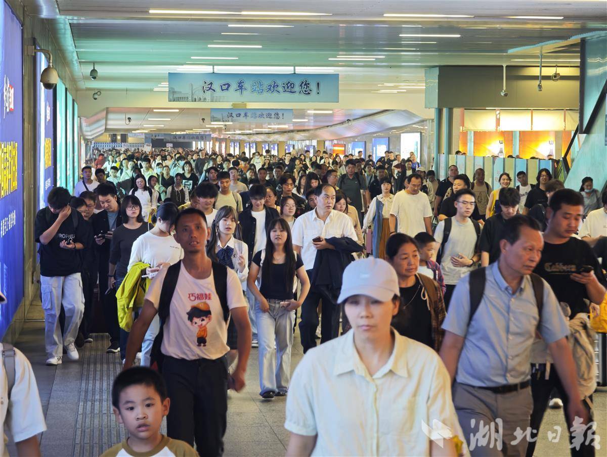 10月8日,返程旅客抵达汉口火车站。湖北日报通讯员宋平摄(记者胡毅通讯员吴铁轩)2025年国庆、中秋假期期间,中国铁路武汉局集团有限公司(除开行旅客列车2000余列,发送旅客762.7万人次,日均发送旅客954人次;运输物资209.5万吨,保障了物资供应) 节日用品。今年的国庆和中秋节“喜相逢”。假期中的战斗。 10月1日,武汉铁路发送旅客122.1万人次,同比增长8.9%,创单日旅客发送量新高。汉口站、武汉站分别发送旅客24.5万人次、18.3万人次,创车站单日旅客最高记录。 徐远艳 国庆中秋假期恰逢“长江文化”“艺术季”,而武汉更是成为十大热门出发和到达城市之一。八天长假期间,武汉铁路共发送旅客762.7万人次,日均95.4万人次,较去年同期增长2.3%。其中,武汉站、汉口站分别发送旅客118.9万人次、124.8万人次,同比增长 与去年同期相比分别增长5%和8.4%。 10月9日,列车客流将继续高位运行。武铁计划增开旅客列车235列,其中广州、宜昌、襄阳等方向夜间高铁列车53列;再次开行深圳、青岛、宜昌等方向32列高铁,预计发送近 85万名乘客。目前,武汉至成都、襄阳、宜昌等地仍有部分季节的车票剩余。