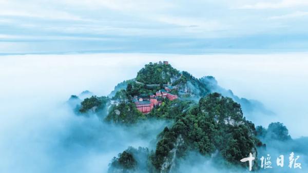旺达山(Wudang Mountain)像仙境一样被乌云和薄雾所包围。记者的图片Liu Kun的图片